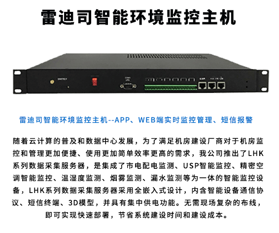 環境監控:UPS電源、溫濕度、門禁、煙感、短信報警(云環控主機)